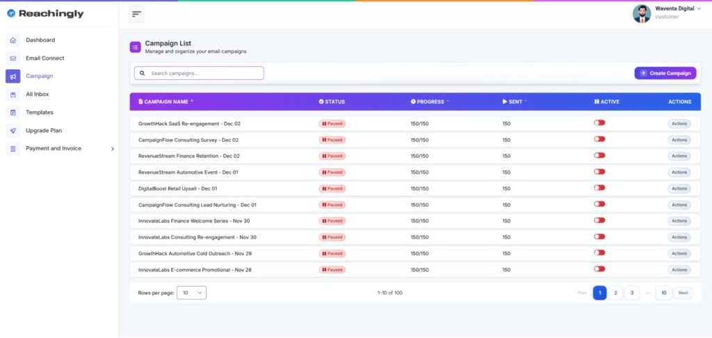 Whether you're a beginner, an expert, or non-tech savvy, you can launch your cold email campaigns on Reachingly.AI effortlessly. You can set up a campaign in a few minutes on this platform. The process involves: