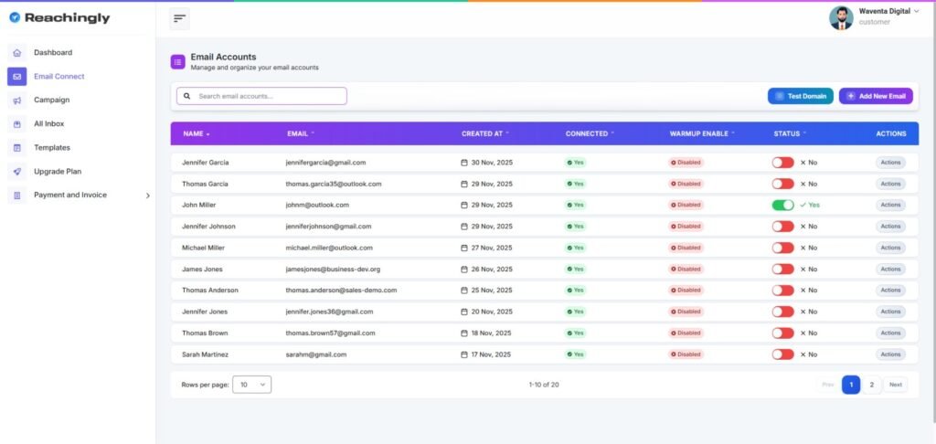 Built-in deliverability tools: With Reachingly.AI, you don't need third-party add-ons. From domain monitoring to email verification, inbox warm-up, and real-time analytics, Reachingly.AI comes packed with all the features you need to run effective cold email campaigns.